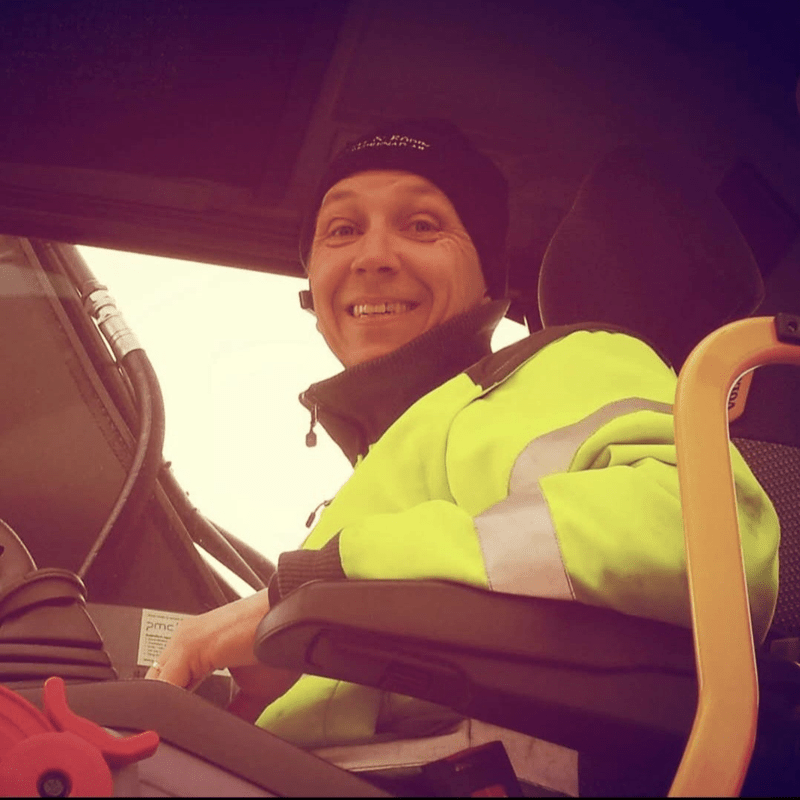 "Det som betyder mest för mig i jobbet är gemenskapen – bra chefer och arbetskamrater som alltid ställer upp. Jag gillar också att det är ordning och reda och att maskinerna är fräscha, det gör arbetet roligare och smidigare. Jag började köra grävmaskin här för ungefär 25 år sedan och har trivts i samma roll sedan dess!"